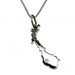 50cm Kette + Palästina mit Brillant am Wunschort in 925 Silber